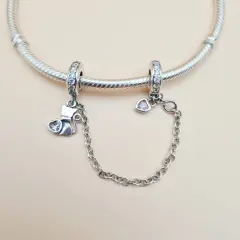 Cadena de Seguridad para charms Gatos. Elaborado con plata esterlina S925, sus sujetadores tienen zirconias blancas y la cadena tiene unos gatitos con una zirconia rosa como decoración Armo paquetes y te ofrezco mejor precio 📦 😊 🛍 Los Charms se venden por separado