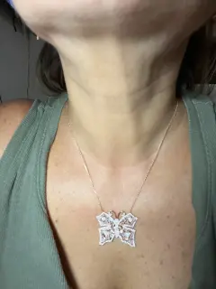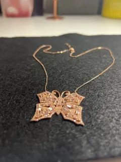 Espectacular cadena de plata en color oro rosado Con dije de mariposa con piedras brillantes en diferentes modelos, luce hermosa y súper vistosa Broche con distintos niveles de argollas para distintas medidas. PRECIOSO