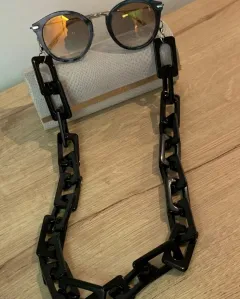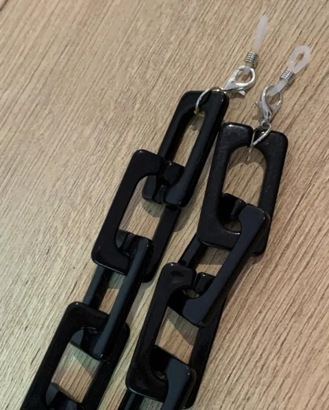 Cadena para lentes o cubrebocas, color negro y también se puede usar como collar, de acrílico grueso muy resistente