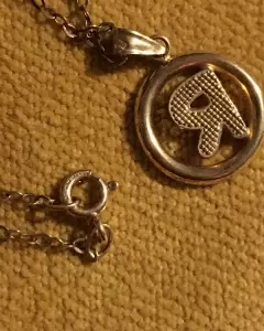 Cadena plata .925 dije R dorada, en buenas condiciones 48 cm de largo la cadena, 1.5 cm diámetro dije