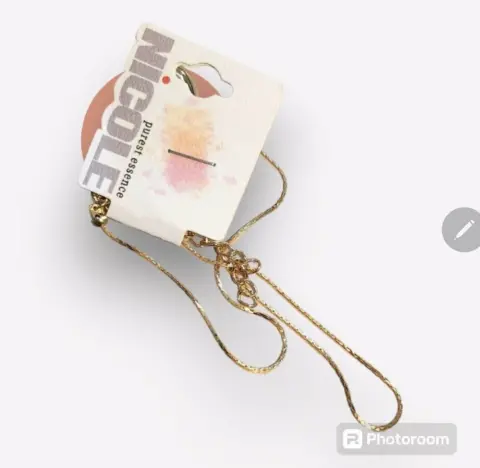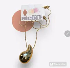 Cadena Trensada de Nicole modelo Gota De Agua Fantasia fina, Cadena Trensada Gota De Agua de Fantasia, Dije Gota de Agua, cierre de brother, color Dorado, mide 20cm de largo, nueva a rstrenar Con etiqueta.