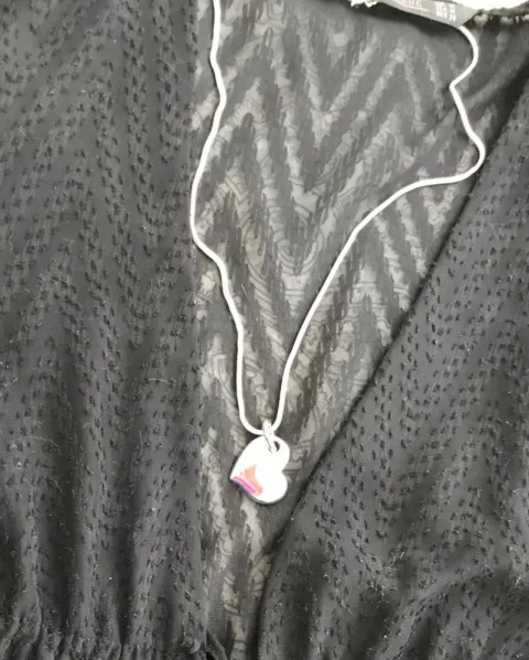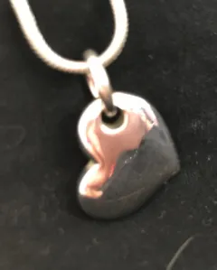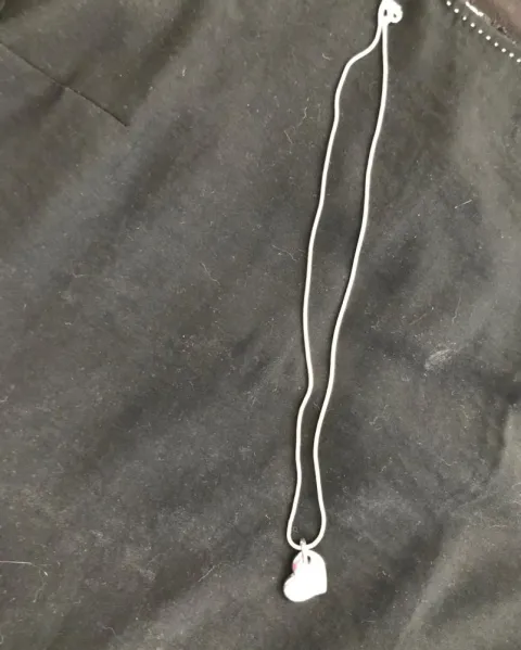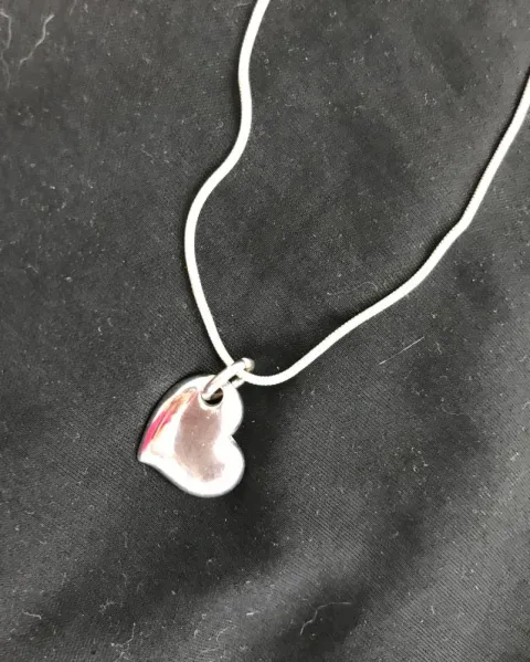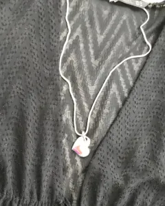 Cadena larga, 60 cms, corazón, alto 2cms ancho 2.5 cms, los dos son de rodio, de buena calidad, no les pasa nada, limpiar con paño suave. NO SHEIN, WISH…….