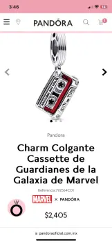 Charm Colgante Cassette de Guardianes de la Galaxia de Marvel pandora, entrego en bolsa cubre polvo y cajita armable pandora