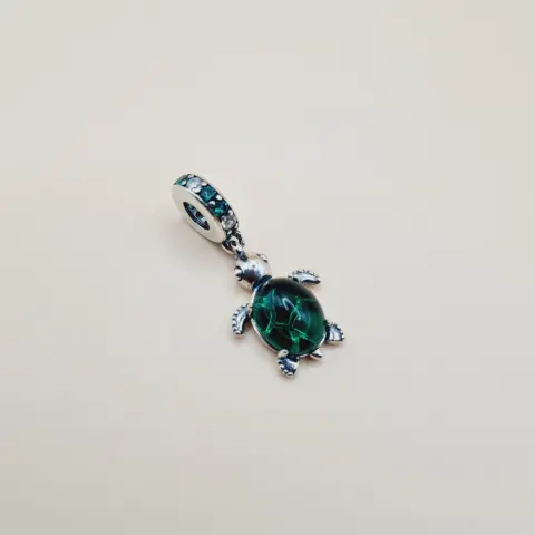 Charm, dije Fauna Marina verde. Charm de plata esterlina S925 con forma de tortuga verde y zirconias blancas y verdes en su sujetador.Se envía con el paño para su limpieza Armo paquetes y te doy mejor precio