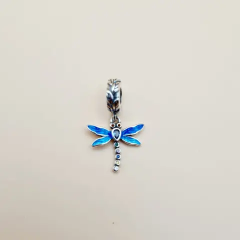 Charm, dije libélula alas azules. Elaborado con plata esterlina S925, sus alas esmaltadas en 2 tonos de azul y su cuerpo decorado con zirconias Se envía con paño para su limpieza Armo paquetes y te ofrezco mejor precio 📦 😊 🛍