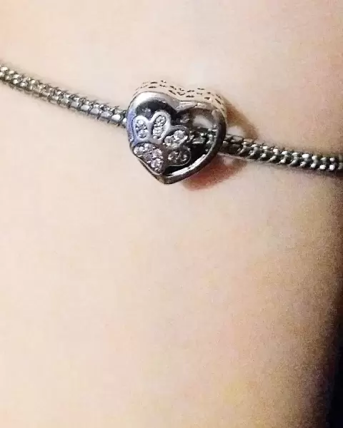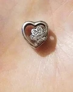 Charm huellita en corazón. Encanto de miniatura de huellita con cristales en un corazón, en plata S925, para añadir a tu colección!Visita mi closet para más charms encantadores pues recuerda que en paquete hay descuentos considerables