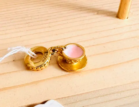 Charm taza de té. Charm de plata .925 con baño dorado, en referencia a la película de la bella y la bestia, ideal para pulsera estilo Pandora