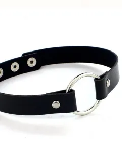 Choker aro. Choker con aro de metal y piel negra