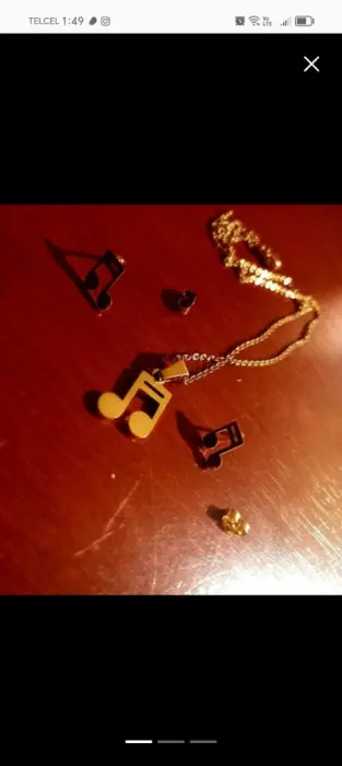Collar & aretes nota musical. Collar y aretes de nota musicalSon de acero inoxidableViene de regalo un Vaso con popote y tapa esta marcada con piedritas una inicial.Si te llama la atención otro vaso y no te gusta este que está publicado lo puedes cambiar por estos otros disponibles (R, T, M, N & B)
