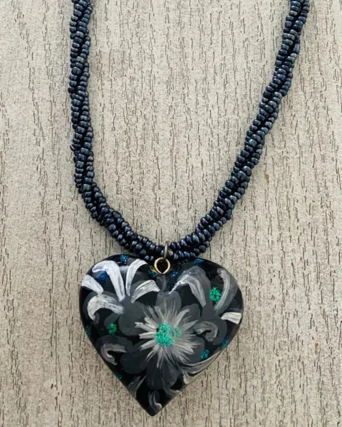 Collar artesanal. Hermoso collar artesanal forma de corazón