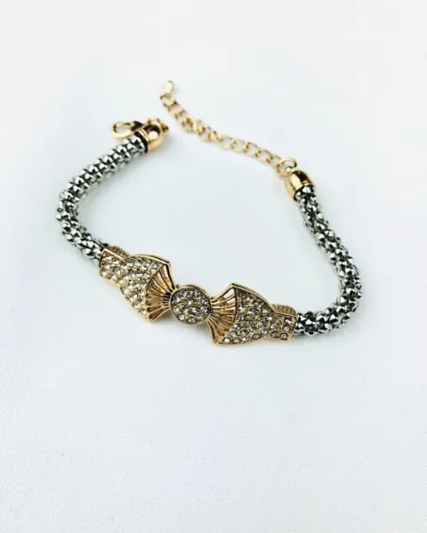 Collar Betesda con pulsera y aretes. Collar en acero inoxidable y aluminio trenzado con cristales incrustados, incluye pulsera y aretes.