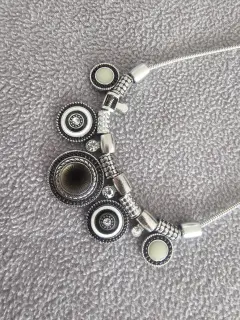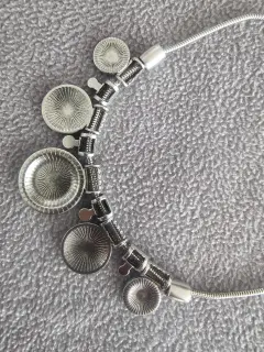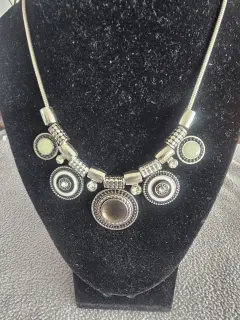 Hermoso y elegante collar de círculos blanco y negro.Material: MetalTamaño: 42 + 5 cmTamaño de dije más grande: 3 cmSe entrega en bolsa de tela de organza tipo costal.Ideal para regalo 🎁