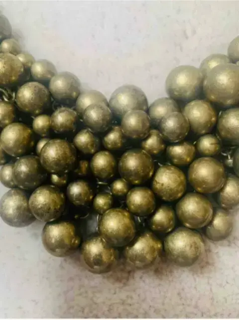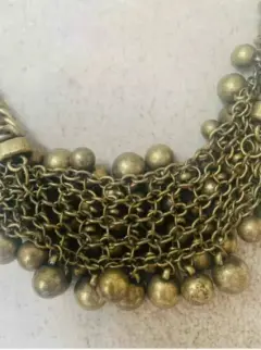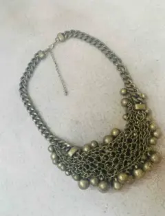 Los collares llamativos pueden elevar cualquier outfit!! Simplemente hermoso y con mucho estilo. Bonito collar en color oro viejo de bolitas sobre malla metalica. Sin detalles. Lo puedes usar con un sueter o blusa con cuello en V. igualmente puedes hacer el juego con aretes color oro pequeños tipo bolita para formar el juego. Mas opciones en mi closet. No mascotas y no fumadora. No mascotas s pesado.