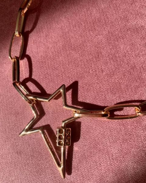 Collar cadena con dije estrella. Collar dorado con cadena gruesa y dije de estrella, súper original y diferente. Nuevo ya que me lo regalaron pero no es mi estilo