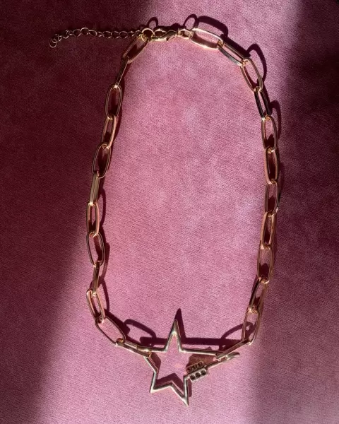 Collar dorado con cadena gruesa y dije de estrella, súper original y diferente. Nuevo ya que me lo regalaron pero no es mi estilo
