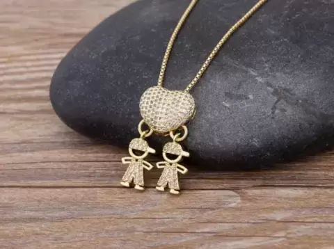 Collar con colgante de corazón 2 niños