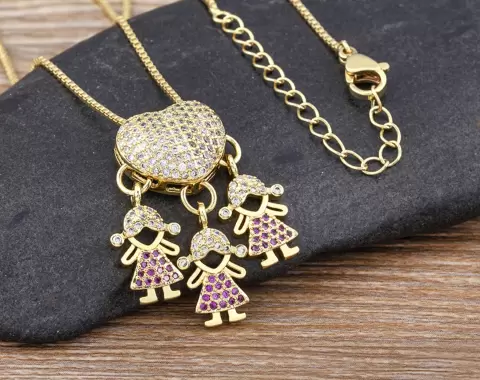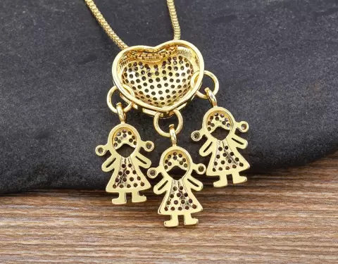 Collar con colgante de Corazón con 3 niñas. Chapado 18k: 3 veces pulido fino acabado en espejo plateado, no se decolora fácilmenteMaterial: cobre, circonita cúbica AAACalidad: 100% nuevo de alta calidadTamaño: Ajuste el tamaño 45 + 5 cmTe interesa más de un artículo, te realizó un 10% de descuento.