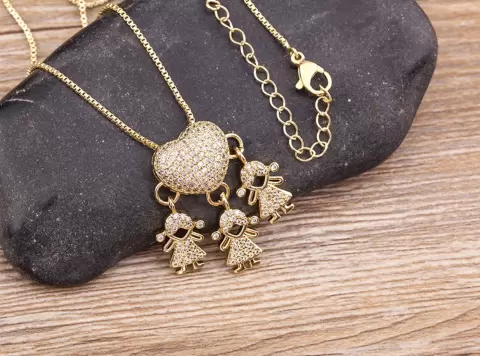 Collar con colgante de Corazón con 3niñas