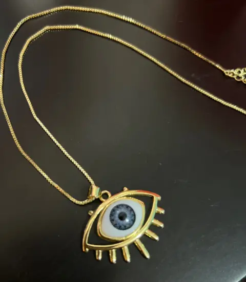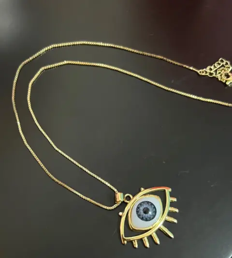 Collar con dije de ojo, en color dorado .Incluye cadena y dije forado .Largo de cadena : 45 cm Bisutería Nuevo