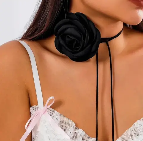 Collar color negro con flor 🌹Medidas: 1.40 cm de largoNuevo sin detalles