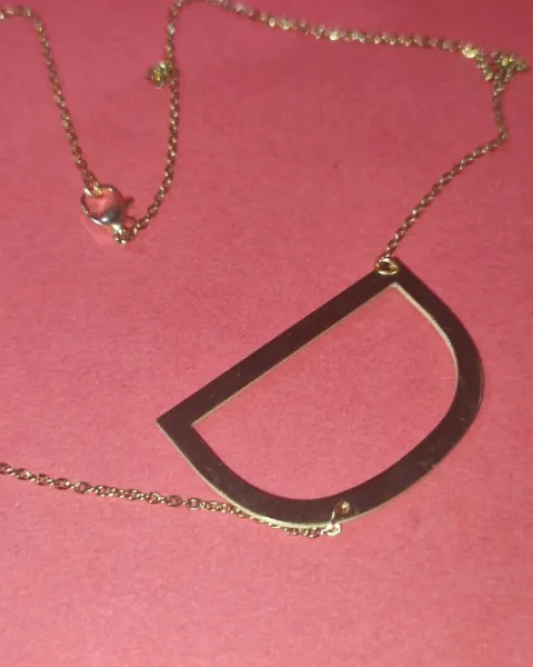 Collar con maxi inicial D. Collar con dije maxi inicial DMide aproximadamente 4 cm y es un poco inclinada Incluye cadenita que mide aproximadamente 40 cm Luce increíble con escote o prendas de cuello alto