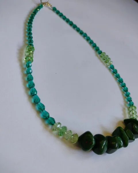 Collar cristal Verde. Collar hecho a mano de cristal y piedra, es único ya que solo hice este modelo. Se ve increíble 😍
