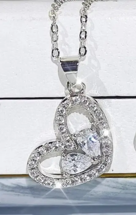 Collar de corazón 💟plateado. Hermoso collar de corazón plateado con brillantes, chapado en plata, mide 45cm aprox. con incrustaciones de cristales. Si te interesan mas artículos de mi closet te puedo armar paquete y hacerte descuento.