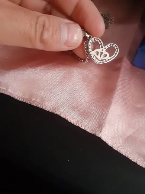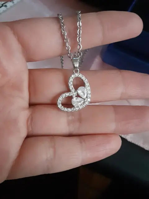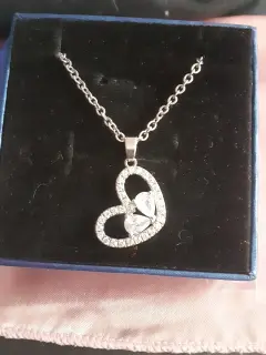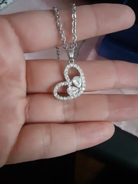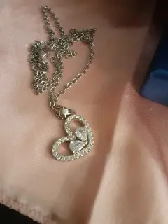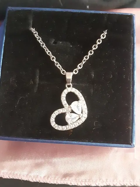 Hermoso collar de corazón plateado con brillantes, chapado en plata, mide 45cm aprox. con incrustaciones de cristales. Si te interesan mas artículos de mi closet te puedo armar paquete y hacerte descuento.