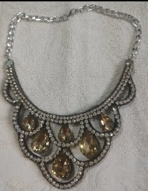 Collar de fiesta. Hermoso collar oara fiesta, nuevo, sin etiqueta. Cuenta con 6 piedras doradas, cadena plateada