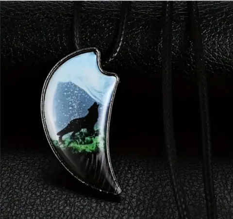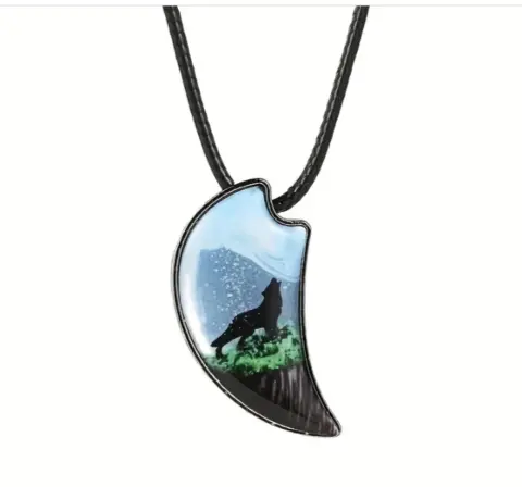 Un collar muy hermoso de hombre lobo, estilo Retro y antiguo, la cadena es de cuero y es unisex.