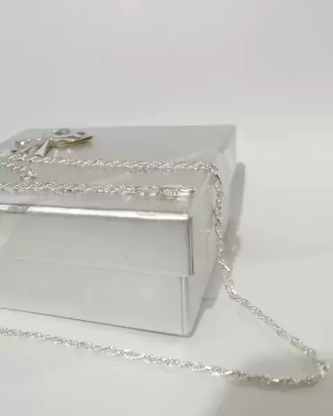 Collar de plata ley 925 tipo torniqueteMide 52 CM de largoLa plata esterlina, o plata de ley es una aleación de plata que contiene 92.5% por peso de plata y 7.5% por peso de otros metales.