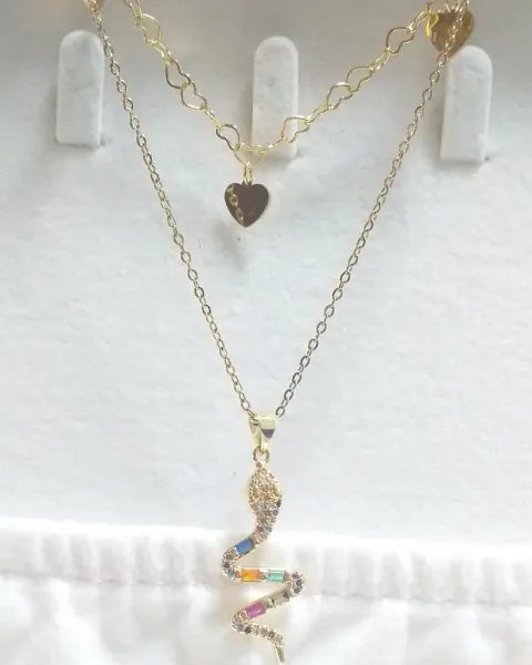 Collar doble Serpientes de colores , en Acero Quirúrgico inoxidable de 316L de excelente calidad. Medida 48cm