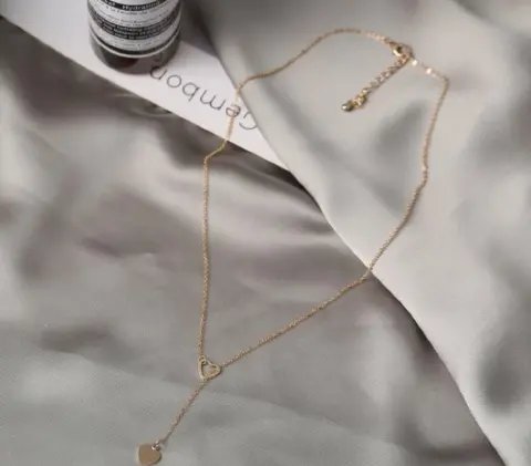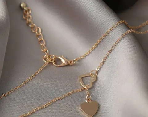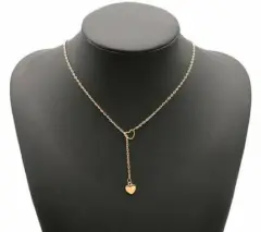 Collar dorado de corazones. Collar de cadena delgada ajustable con colgante de corazón material aleación de hierro