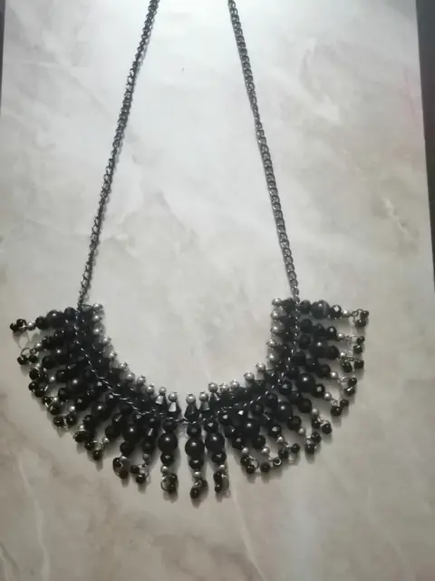 Con piedra en negro y aplicaciones metálicas en plata.Se ajusta para lograr el largo deseado