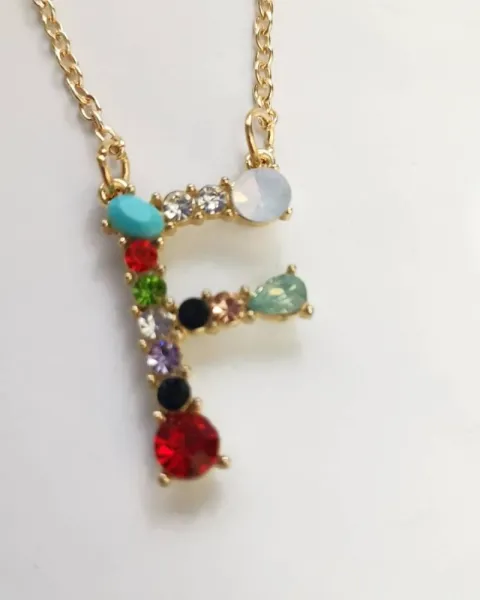 Collar inicial F pedreria tamaño 3 cm 2x1