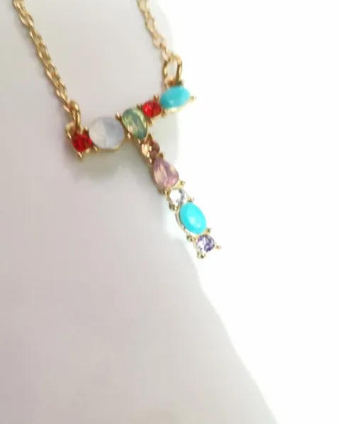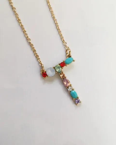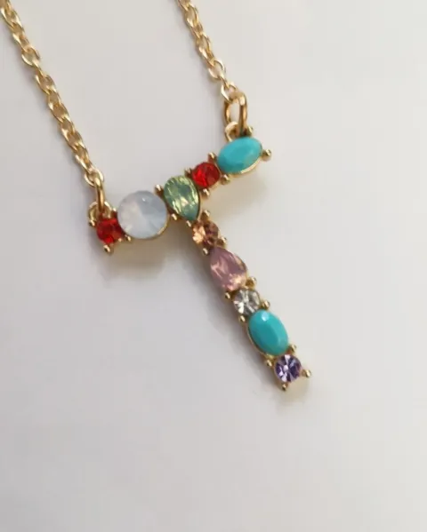 Collar inicial T pedreria tamaño 3 cm 2x1