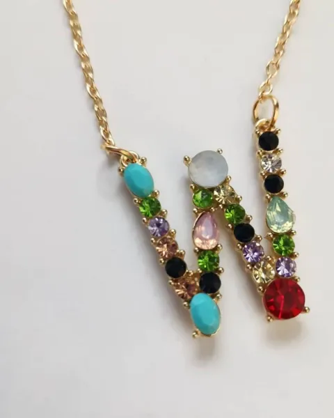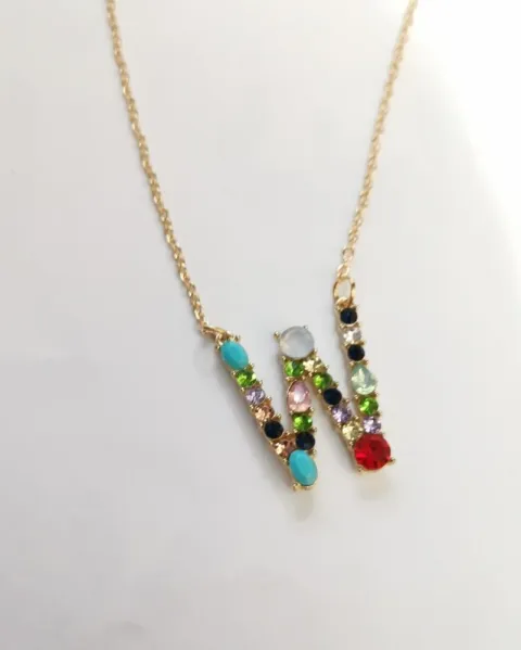 Collar inicial W pedreria tamaño 3 cm 2x1