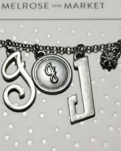 Collar con dijes de inicial J, bañado en rodio y acero inoxidable.No se mancha, no se oxida