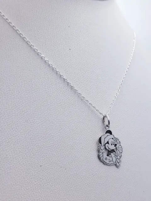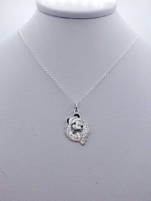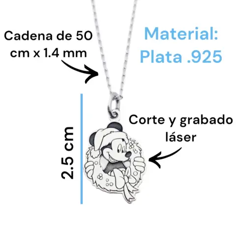 Lindo collar de Mickey Mouse con cadena.Hecho en auténtica plata ley .925Corte y grabado láser.Dije de 2.5 cm de largoCadena de 50 cm de largo x 1.4 mm de ancho.Incluye cajita almacenadora. Hecho por artesanos mexicanos.Muchas gracias por elegir y apoyar lo hecho en México.