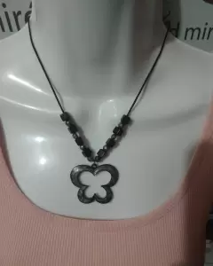 Collar negro bisuteria. Collar negro hilo de raton en naylon con cuentas redondas piedra de luna de acrílico transparente ahumado, cuentas de pirita y cuentas cuadradas de madera. Dije y aretes de mariposa en acero con terminado tipo obsidiana nevada. Medidas: 31 cm de largo mas 10 cm de extensión. Aretes 1.5cm. Dije 3.5 cm.