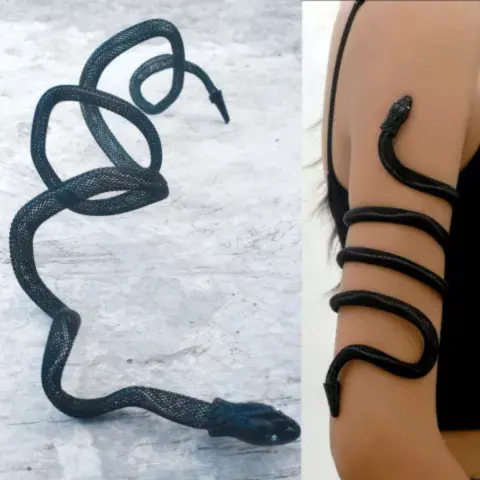 Collar Pulsera De Serpiente NegraDe Fantasía Material HierroUnitallaMedidasLargo 76 cmAncho 3 cmOcupa este maravilloso accesorio como collar, pulsera de pie tobillera o mano , brazo .Lucelo con escotes , blusas, vestidos , tops, para una cita, reunión, fiesta , días de plaza , viajes, cenas, graduaciones, festivales, conciertos etcLuce tu estilo y destaca tu belleza!