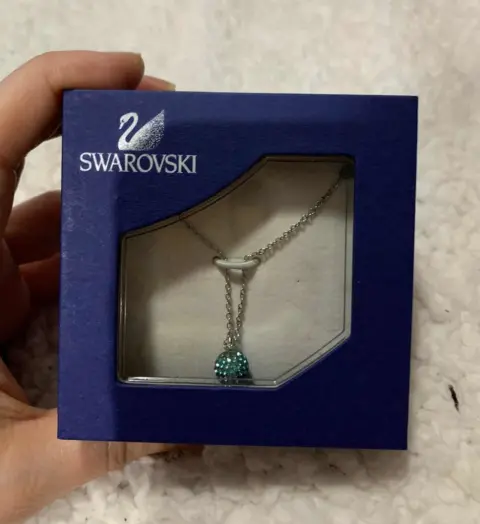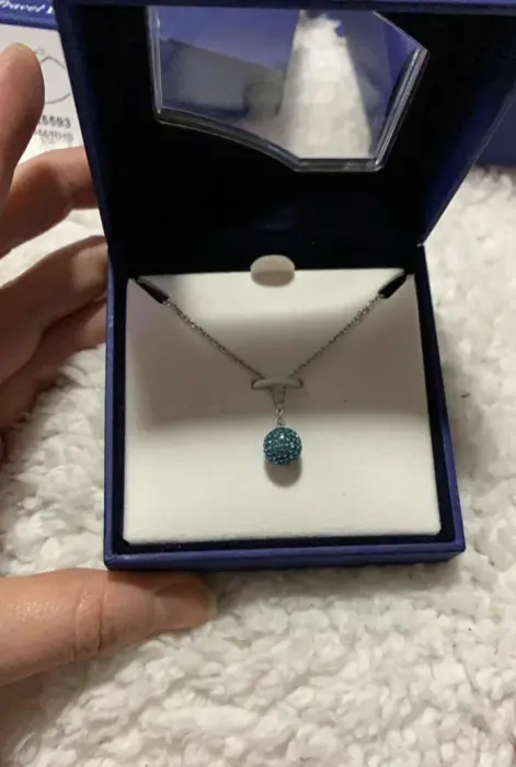 Collar Original Swarovski con esfera de mini cristales azules. En perfecto estado, se ha mantenido guardado sin uso.