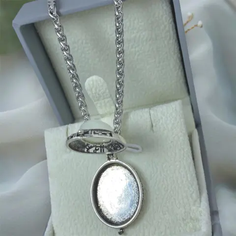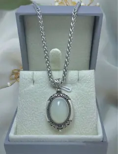 Collar tailandés con jadeíta blanca hetiana es tipo locket se abre y cierra. Su material es una mezcla de metales en diferentes proporciones con la calidad propia del país de origen TAILANDIA. Es pieza de colección.