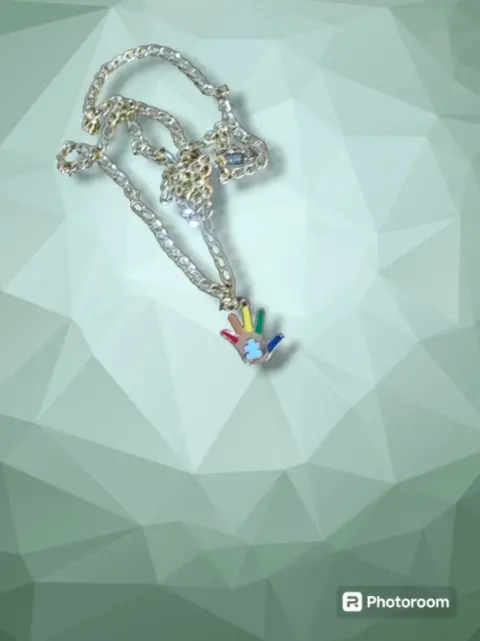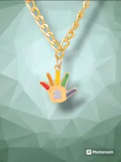 Collar trenzado color dorado con Dije conciencia del Autismo en forma de una manita multicolores y broche de rosca, mide 34cm de largo con el dije, ideal para ti o para tu ser querido, nuevo a estrenar.