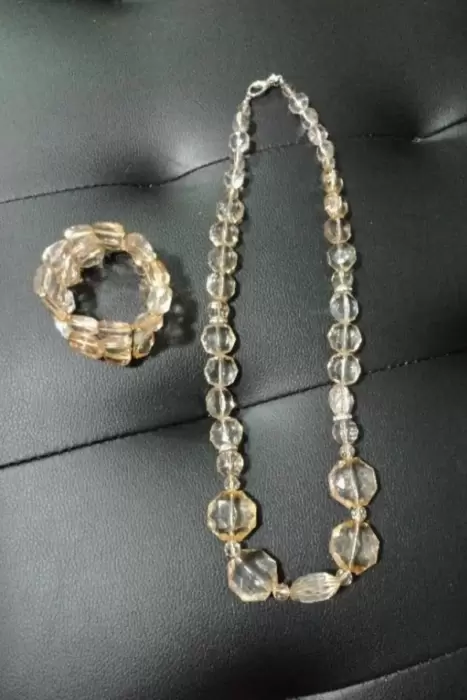 Jgo de collar y brazalete con cuentas de Acrilico color Rose gold. con pequeños detalles color plata.BANANA REPUBLIC