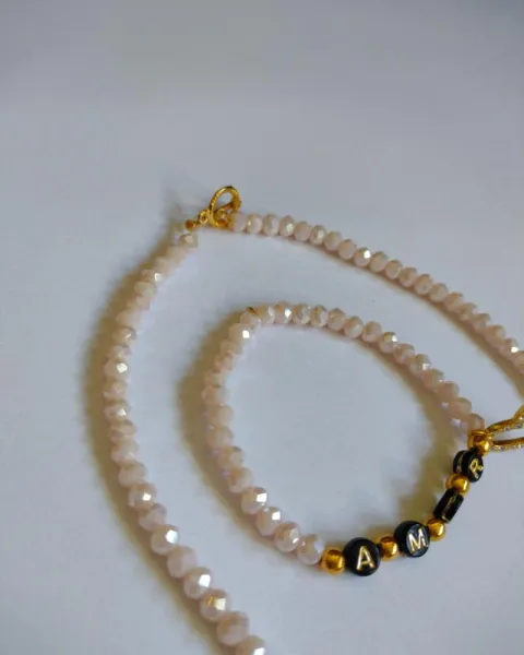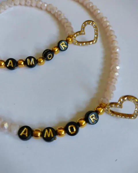 Pack de collar y pulsera, hechos de cristal, palabra amor y dije de corazón. Es único ya que solo hice este modelo, hecho a mano. Se ve muy femenino.