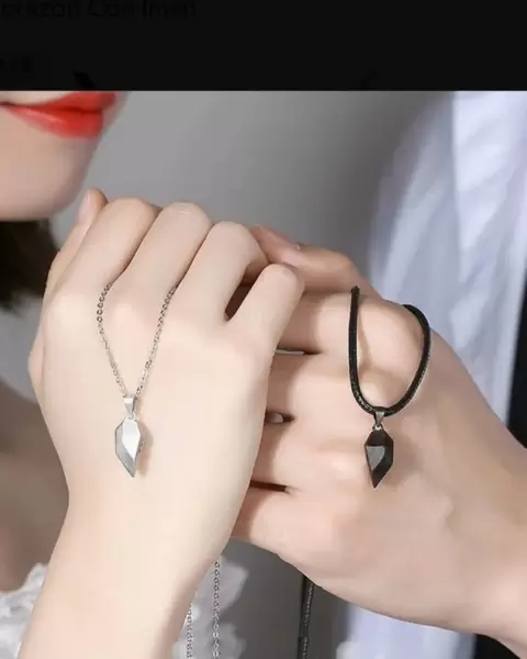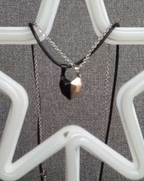 Collares corazon negro y plata. Hermoso paquete de collares en forma de corazon, al unirse completan el corazon, ACERO INOXIDABLE NUEVOS