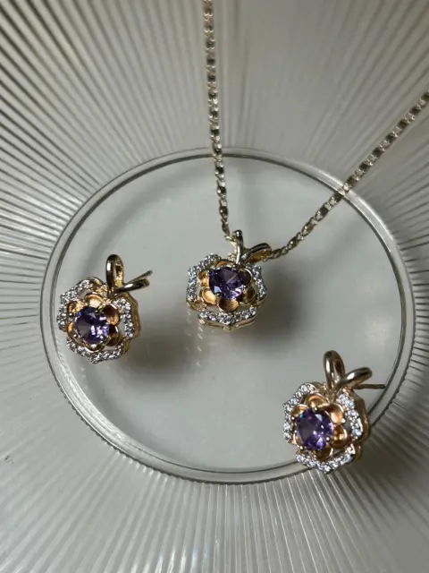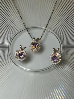 CONJUNTO JOYERÍA MORADO ORO LAMINADO. Conjunto joyería de oro laminado con zirconias.Adquiere accesorios de gran calidad que tengan una mayor vida y además no manchen tu piel🌸.¡Completa tu outfit!🛍️Excelente para regalo, incluye cajita de plástico y si lo deseas, por $5 extra una cajita de regalo🩷