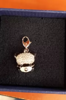 Dije Charm Panda Swarovsky. Hermoso dije de oso panda de la marca swarovsky, se envía en su cajita , mide 3cm de alto con el broche, esta en muy buenas condiciones.