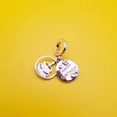 Elaborado con plata esterlina S925 con forma de pastel de cumpleaños con su velita y de fondo zirconias moradas y lilasSe envía con su paño de limpieza Armo paquetes y te ofrezco mejor precio 📦 😉
